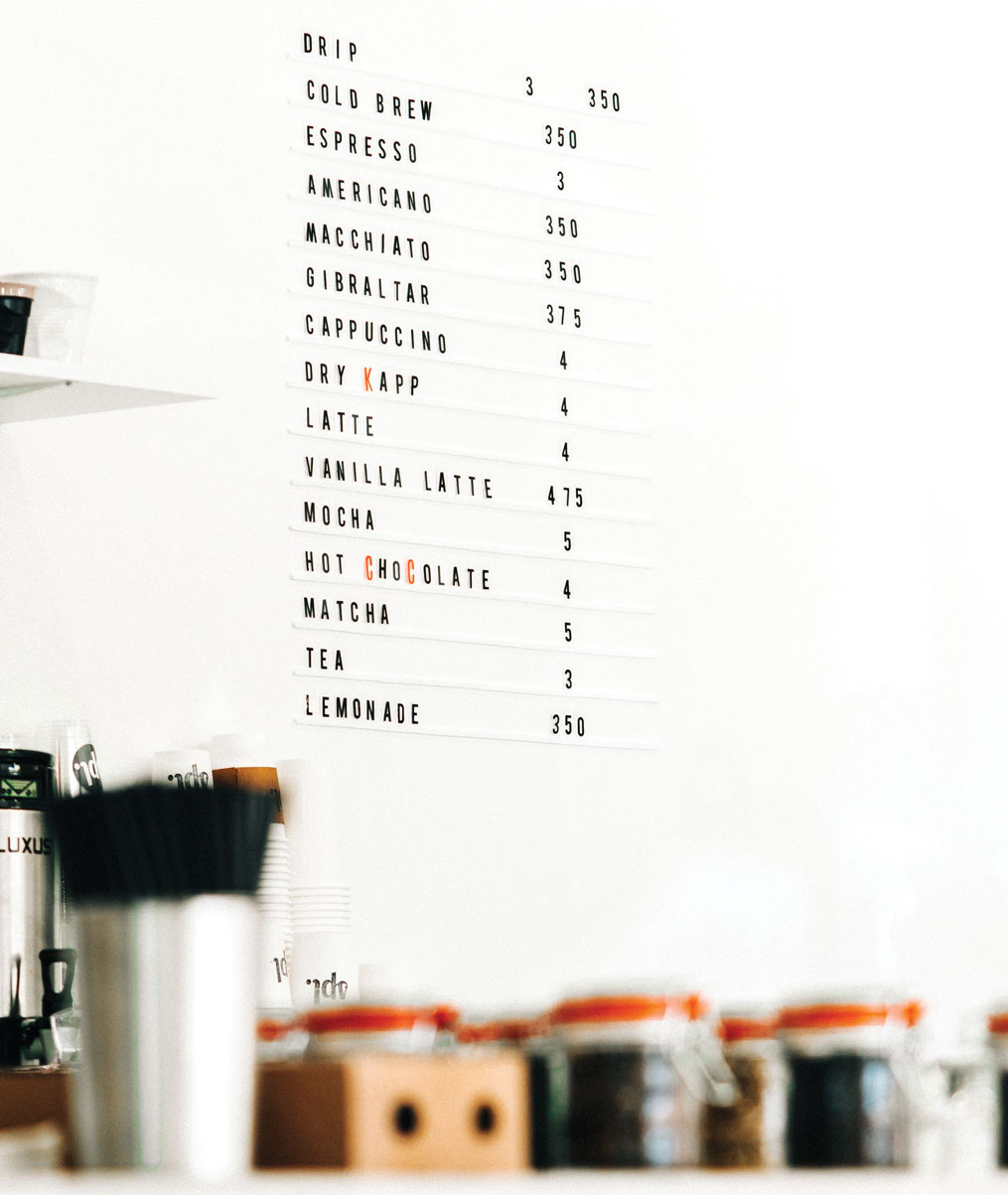 “As [café owners] are still developing their brand identity, it’s really important to figure out who their target customer base is going to be,” advises Joseph Hewitt. Hewitt is a creative technologist and fabricator for Fortitude, a design and manufacturing firm in Portland, Oregon, who redesigned Stumptown’s menus in 2018. “That can be very different depending on where the café is or the personal style of the person opening it. You don’t want to get sick of something you’re going to be in and around every day.”