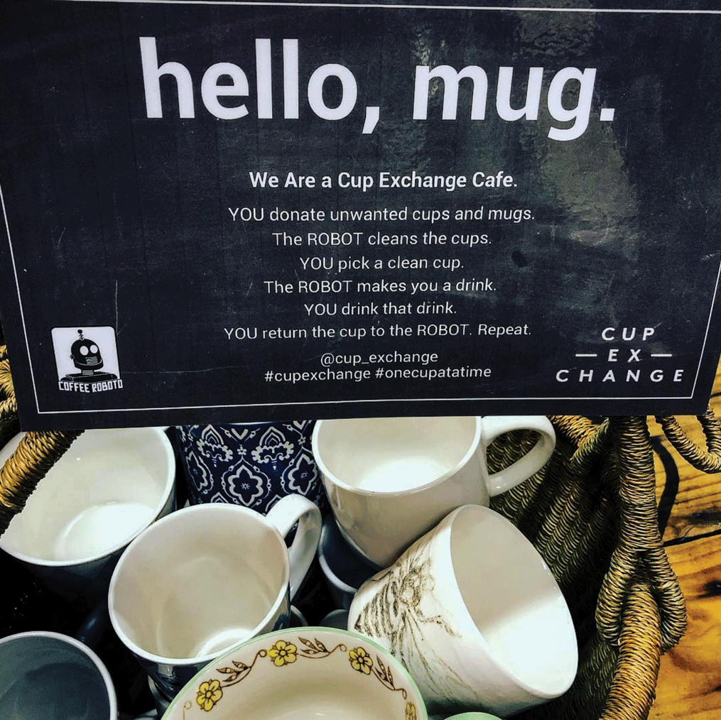 Clients can return the mugs after use for sanitization and re-entry into Coffee Roboto’s lending supply, or they can keep them.